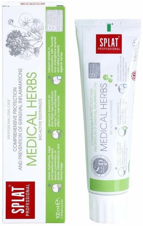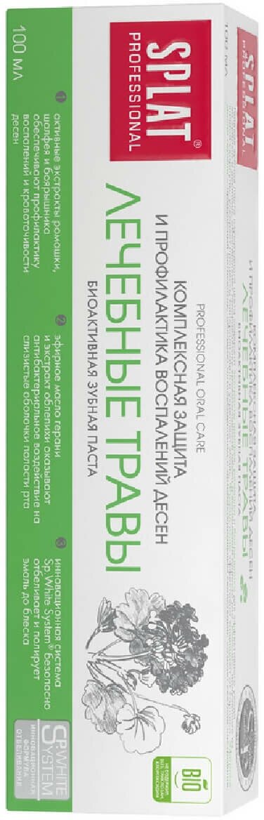 Зубная паста SPLAT Professional, Лечебные травы, 100 мл, в тубе в коробке (4603014001139)