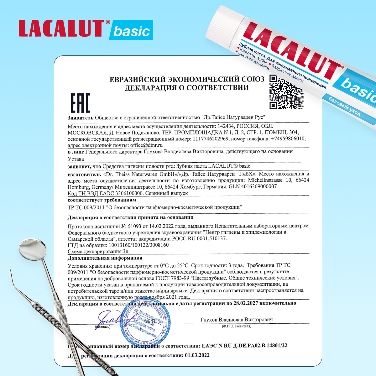 Зубная паста LACALUT Basic, 65 г (спайка 2 шт)