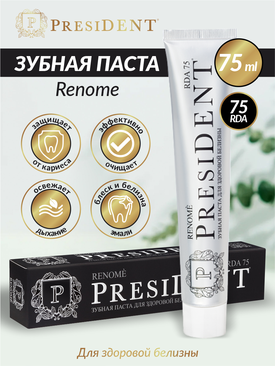 Зубная паста PRESIDENT Renome 75г (75 RDA) 4605370019902