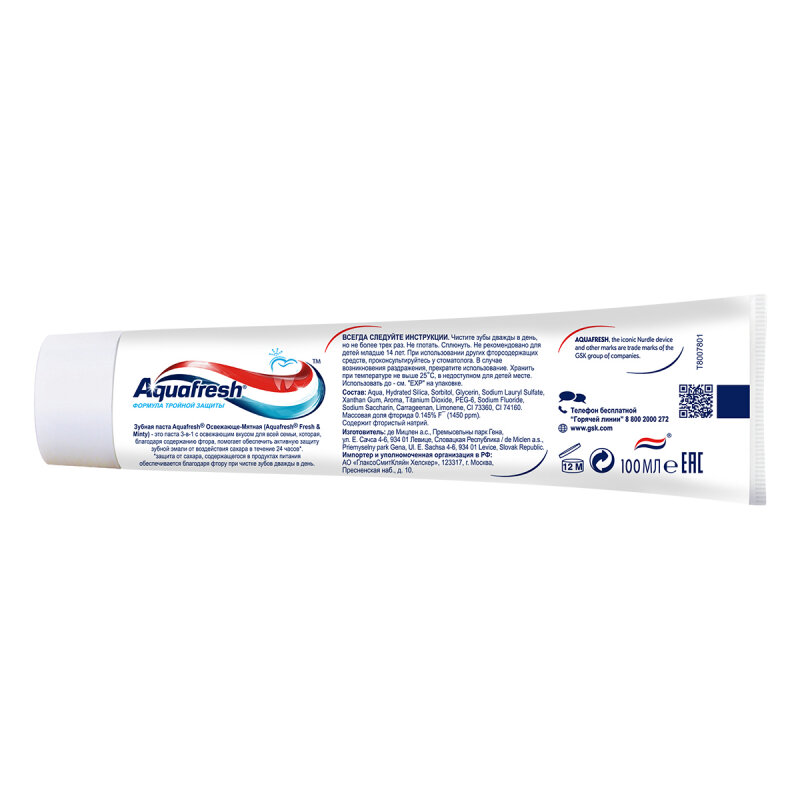 Зубная паста Aquafresh Тройная защита Освежающе-мятная, 100 мл