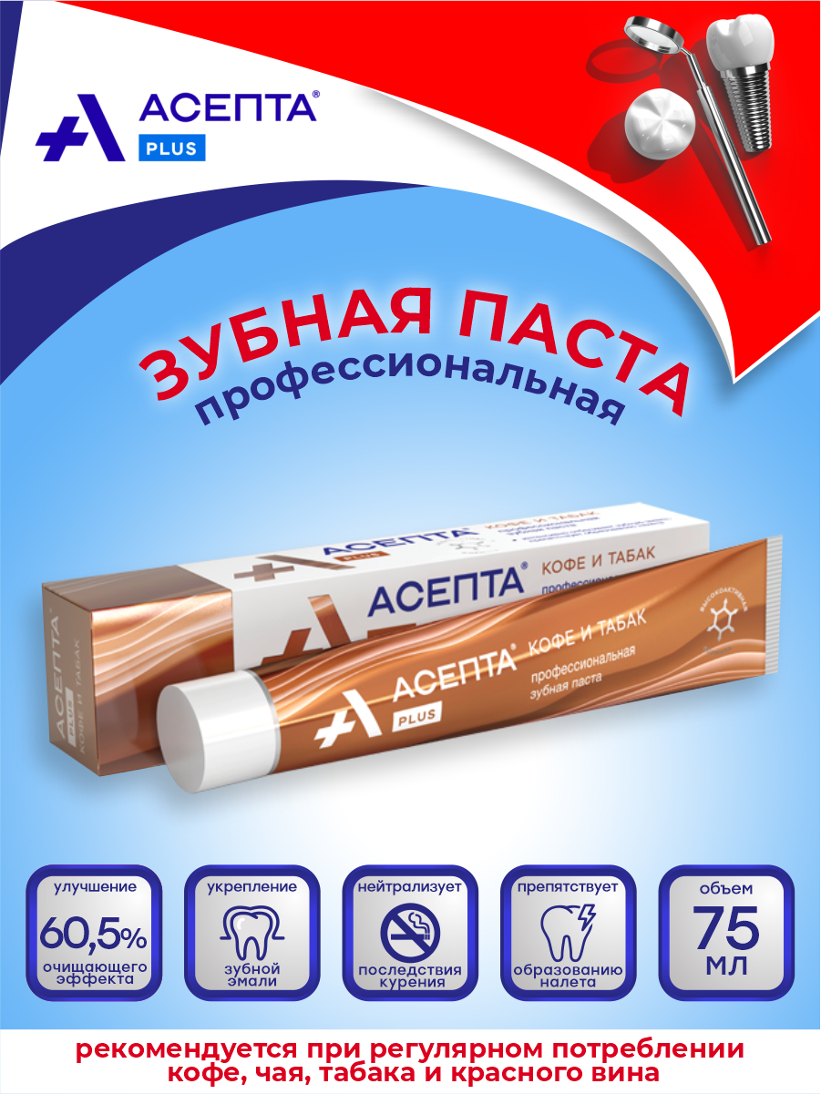 Зубная паста Асепта Plus, туба, кофе и табак, 75 мл