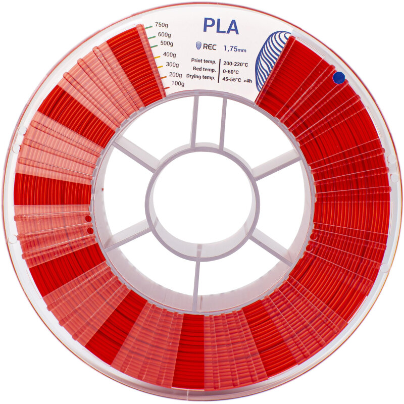 ПЛА пластик для 3д печати REC филамент PLA красный RAL3028 750 гр 1.75 мм
