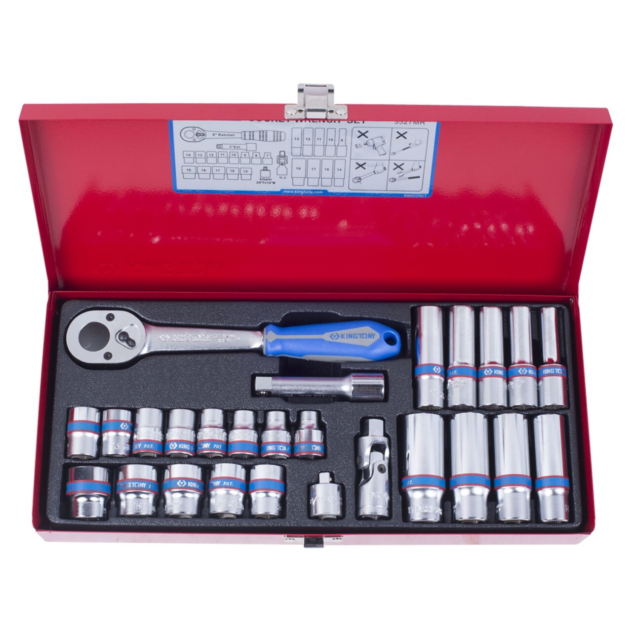 Купить KING TONY Набор торцевых головок с принадлежностями 3/8", шестигранные, 7-19 мм, 26 предметов 3527MR