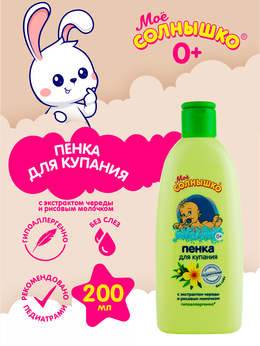 Моё солнышко Пенка для купания с экстрактом череды и рисовым молочком, 200 мл