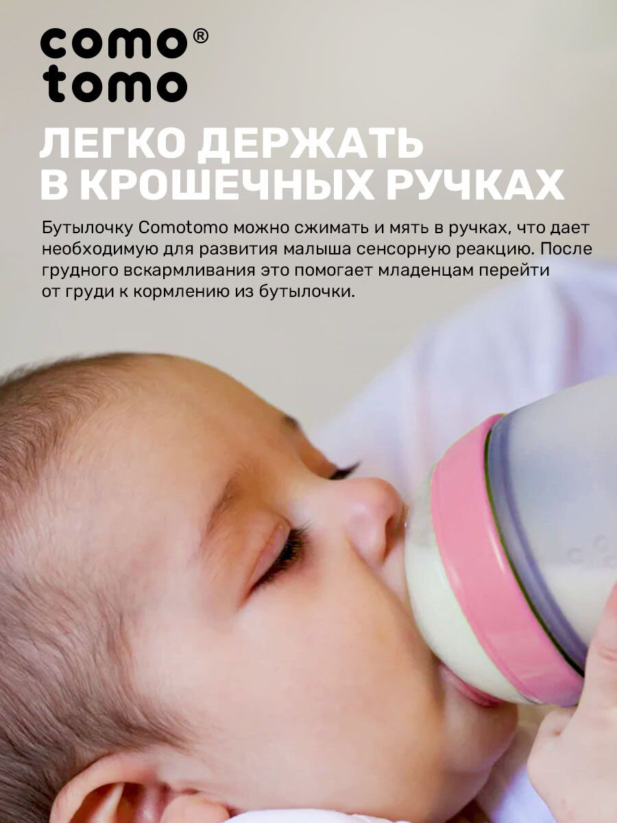 Бутылочка Comotomo (Комотомо) для кормления 150мл розовый 150P-EN