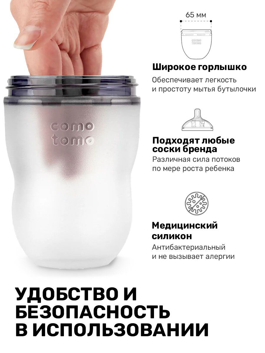Бутылочка для кормления COMOTOMO Natural Feel Baby Bottle 250 мл, для малышей от 3 месяцев, с широким горлом, антиколиковая