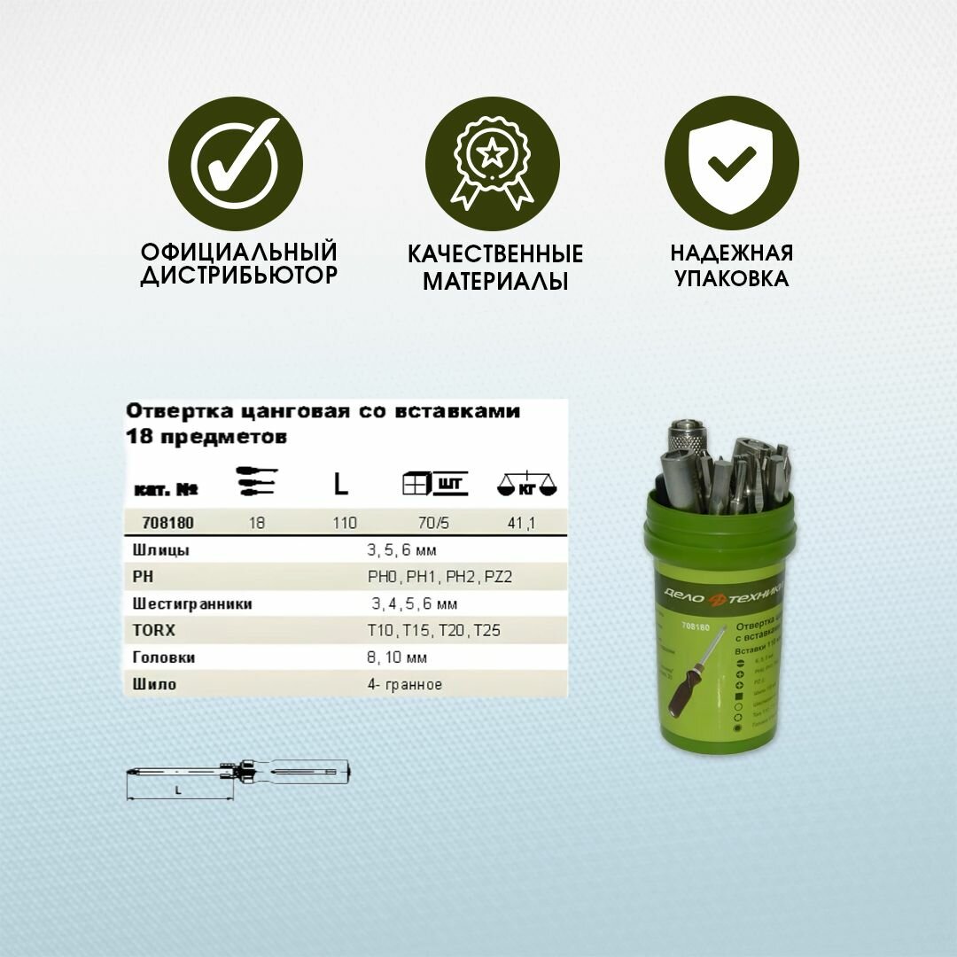Дело техники 708180 отвертка цанговая С вставками 18 110 ММ ШИЦ