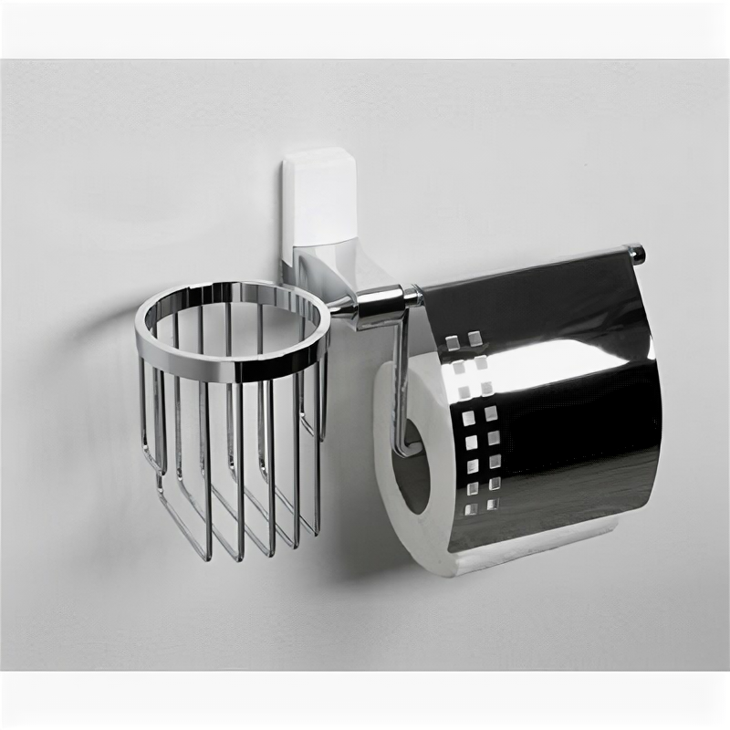 Держатель туалетной бумаги и освежителя воздуха WasserKRAFT Leine K-5059W с крышкой Хром Белый