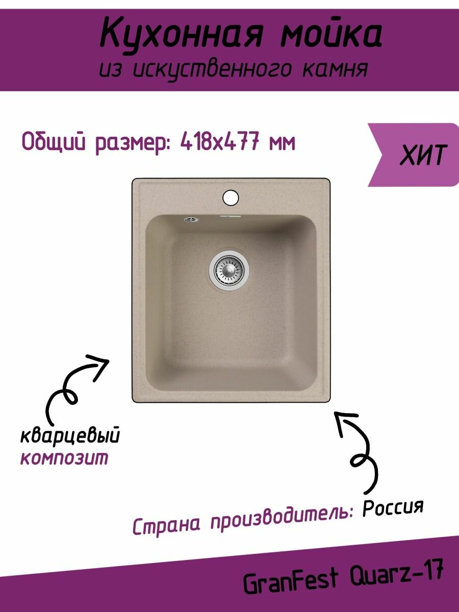 GRANFEST Мойка QUARZ 17 1-чаша 420*480мм бежевый арт.GF-Z-