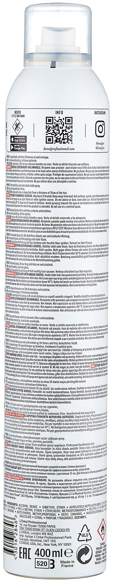 Спрей LOREAL PROFESSIONNEL с фиксацией и защитой от влажности 400 мл