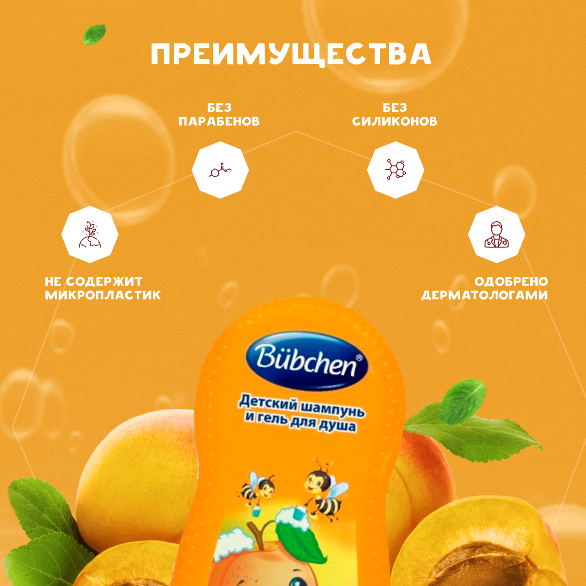Bubchen Детский шампунь и гель для душа Спелый абрикос 230 мл. х 2 шт.