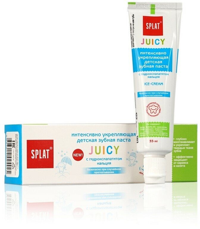 SPLAT Juicy Детская укрепляющая зубная паста с гидроксиапатитом мороженое 35 мл.