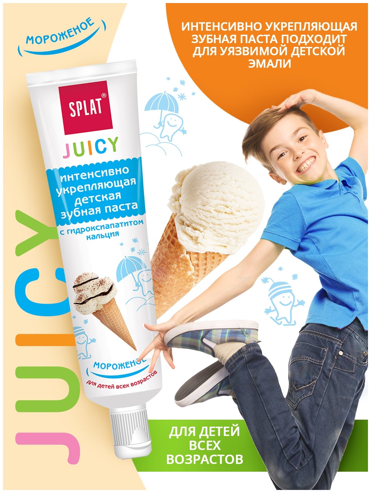Детская зубная паста Splat Juicy «Мороженое», с гидроксиапатитом, 35 мл