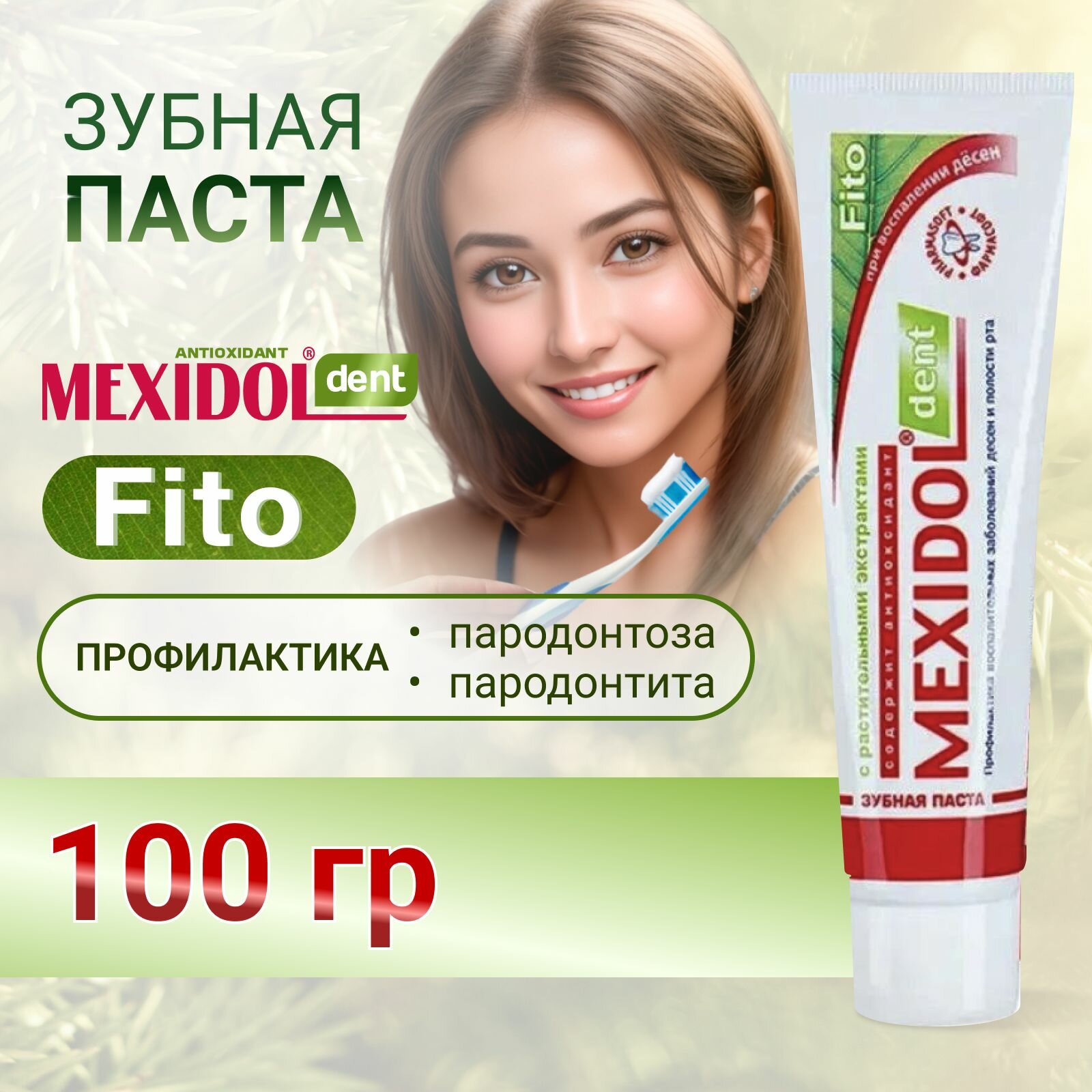 Купить Зубная паста MEXIDOL Dent Fito 100г (Мексидол дент Фито) для профилактики пародонтоза и пародонтита, гигиены полости рта с экстрактом пихты и подорожника с противовоспалительным эффектом