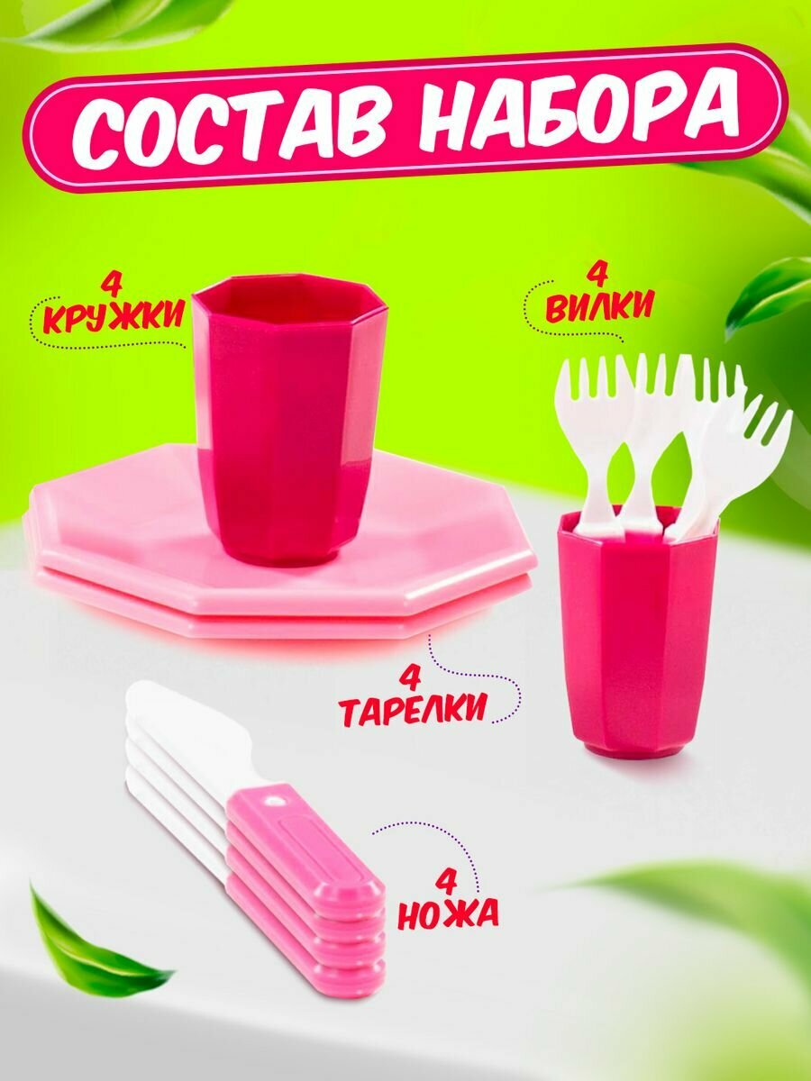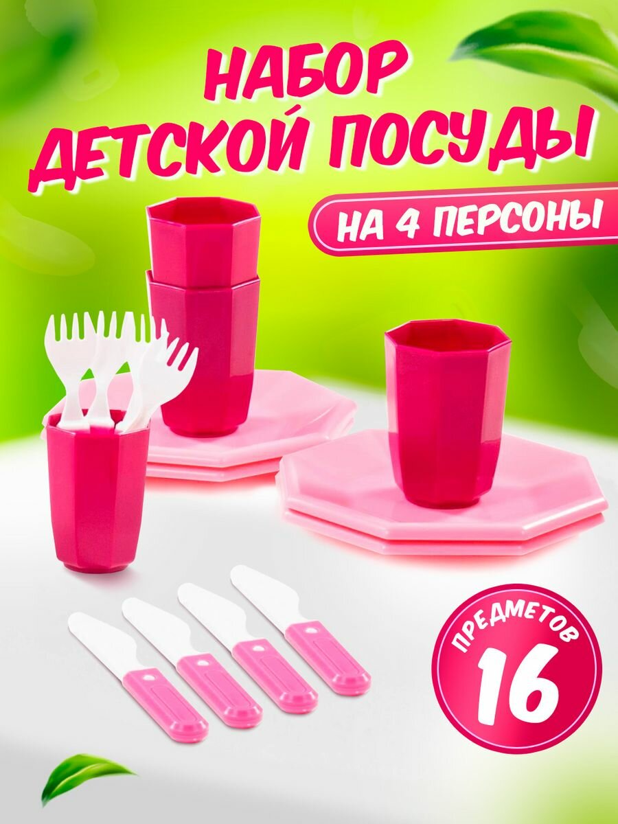 Игровой набор детской посуды Полесье "Ретро" 16 предметов, (розовый) 61713