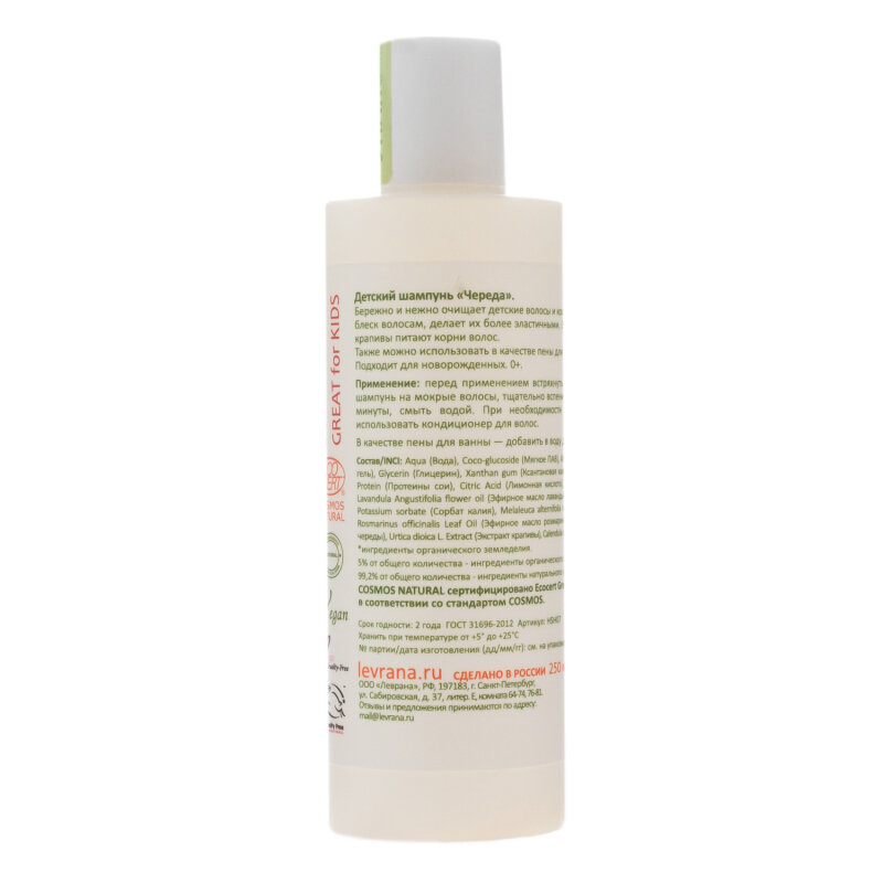 Детский шампунь для волос без слез Череда, натуральный 0+, Levrana, 250 мл