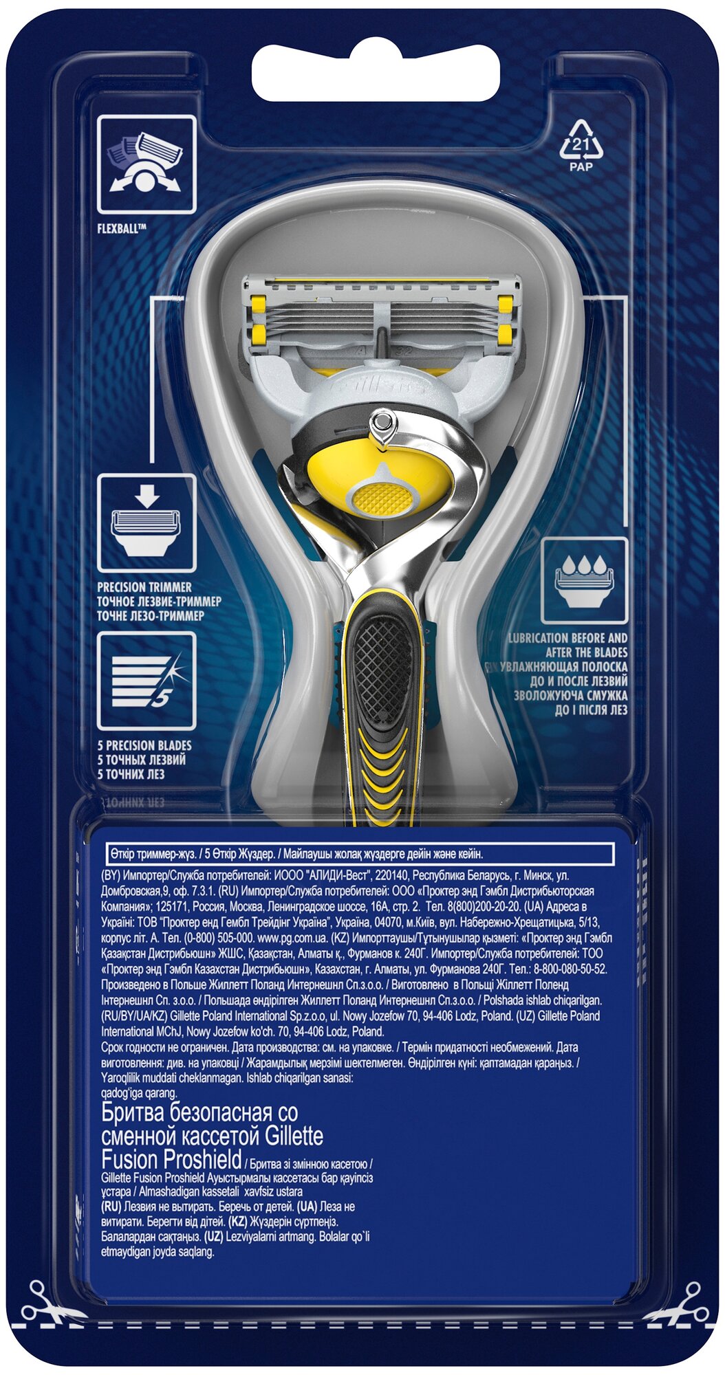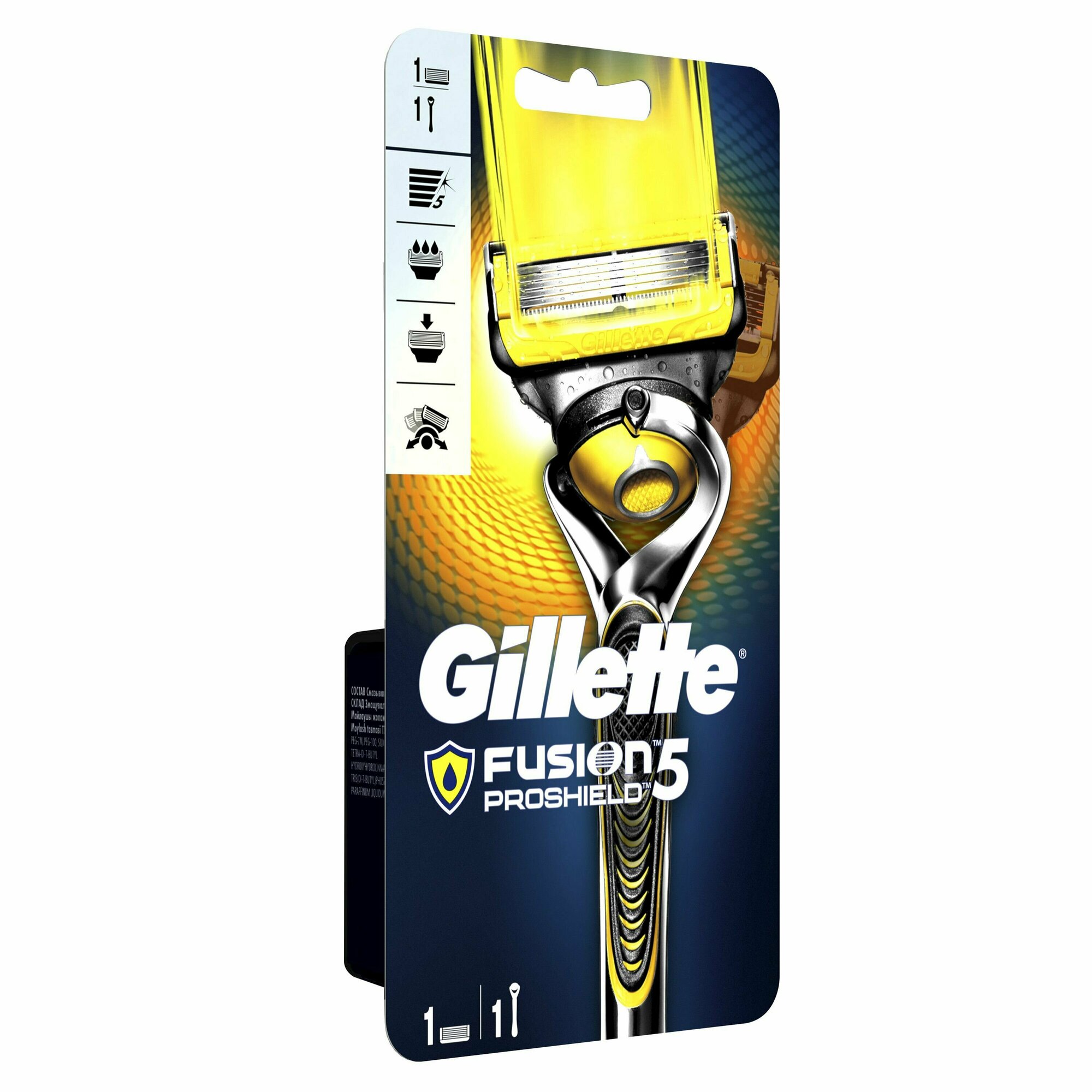 Джилет Фьюжн Прошилд (желтый) / Gillette Fusion5 ProShield - Станок для бритья с 1 сменной кассетой