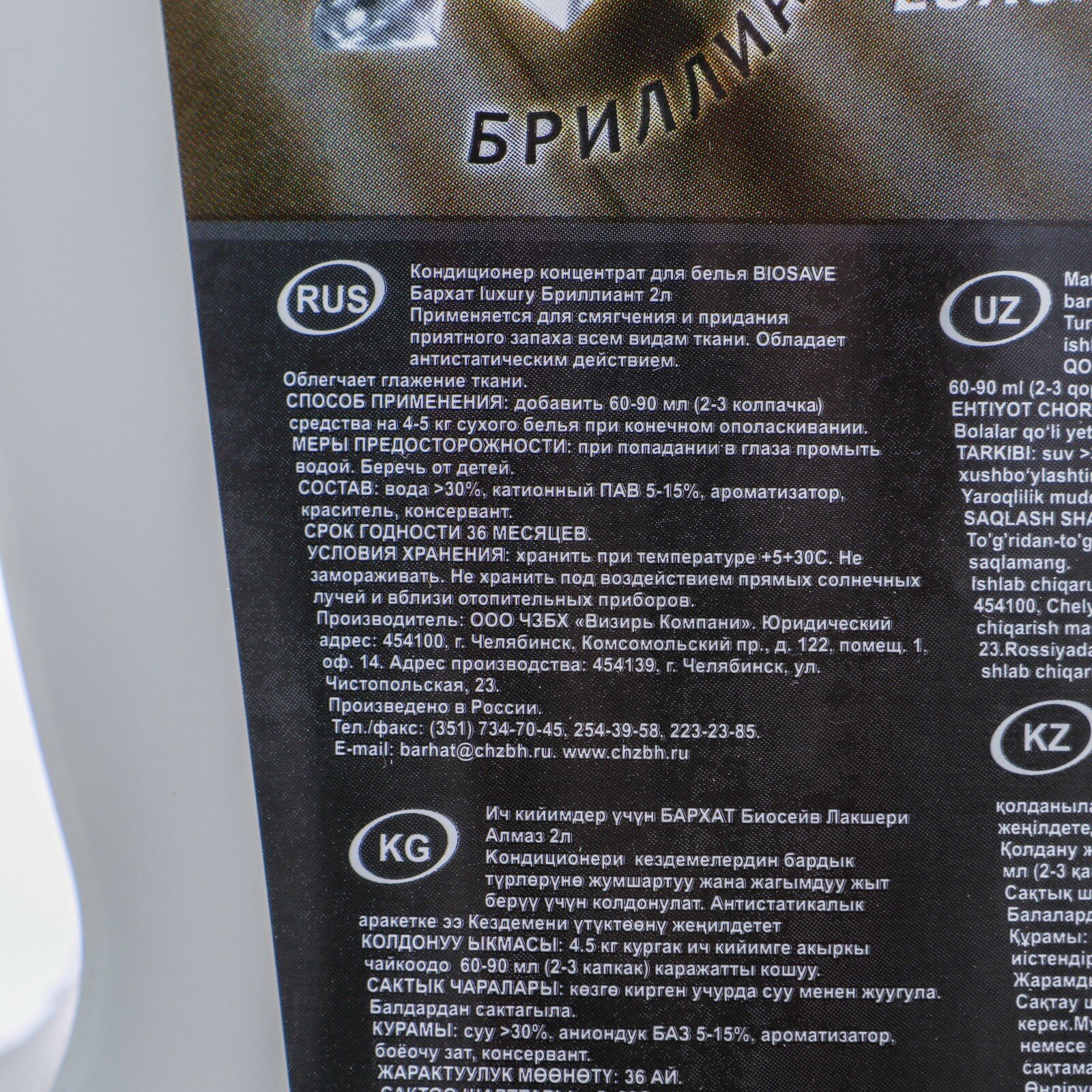 Кондиционер для белья BIOSAVE Бархат Luxury "Бриллиант", концентрат, 2 л 9562626