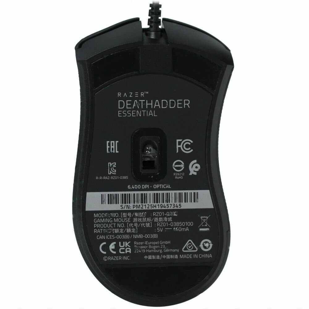 Мышь Razer DeathAdder Essential, игровая, оптическая, проводная, USB, черный [rz01-03850100-r3m1]