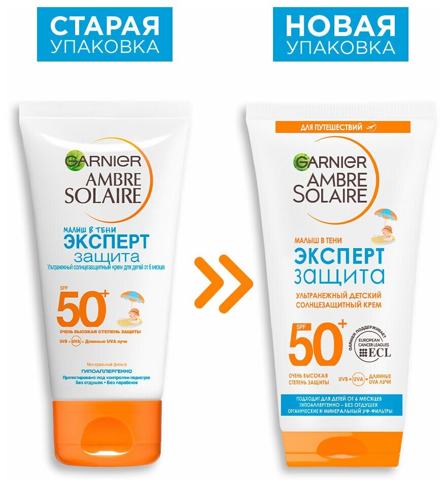 GARNIER Крем для загара детский Ambre Solaire Эксперт Защита Малыш в Тени защитный SPF 50, 50 мл интересное: