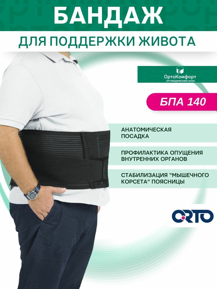 ORTO БПА-140 Бандаж абдоминальный поддерживающий, для выпуклого к низу живота (XXXXL / Черный)