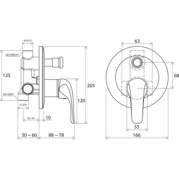 Смеситель для ванны/душа RAVAK Rosa RS 061.00 встраиваемый, в комплекте со скрытой частью