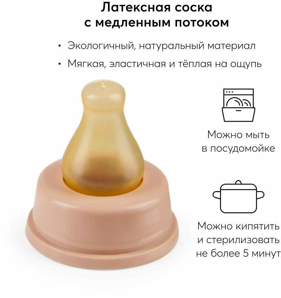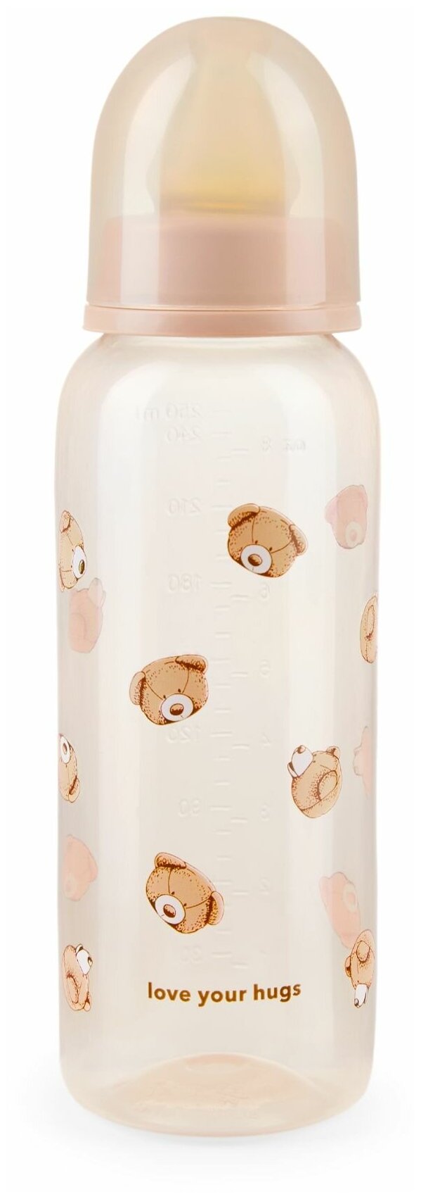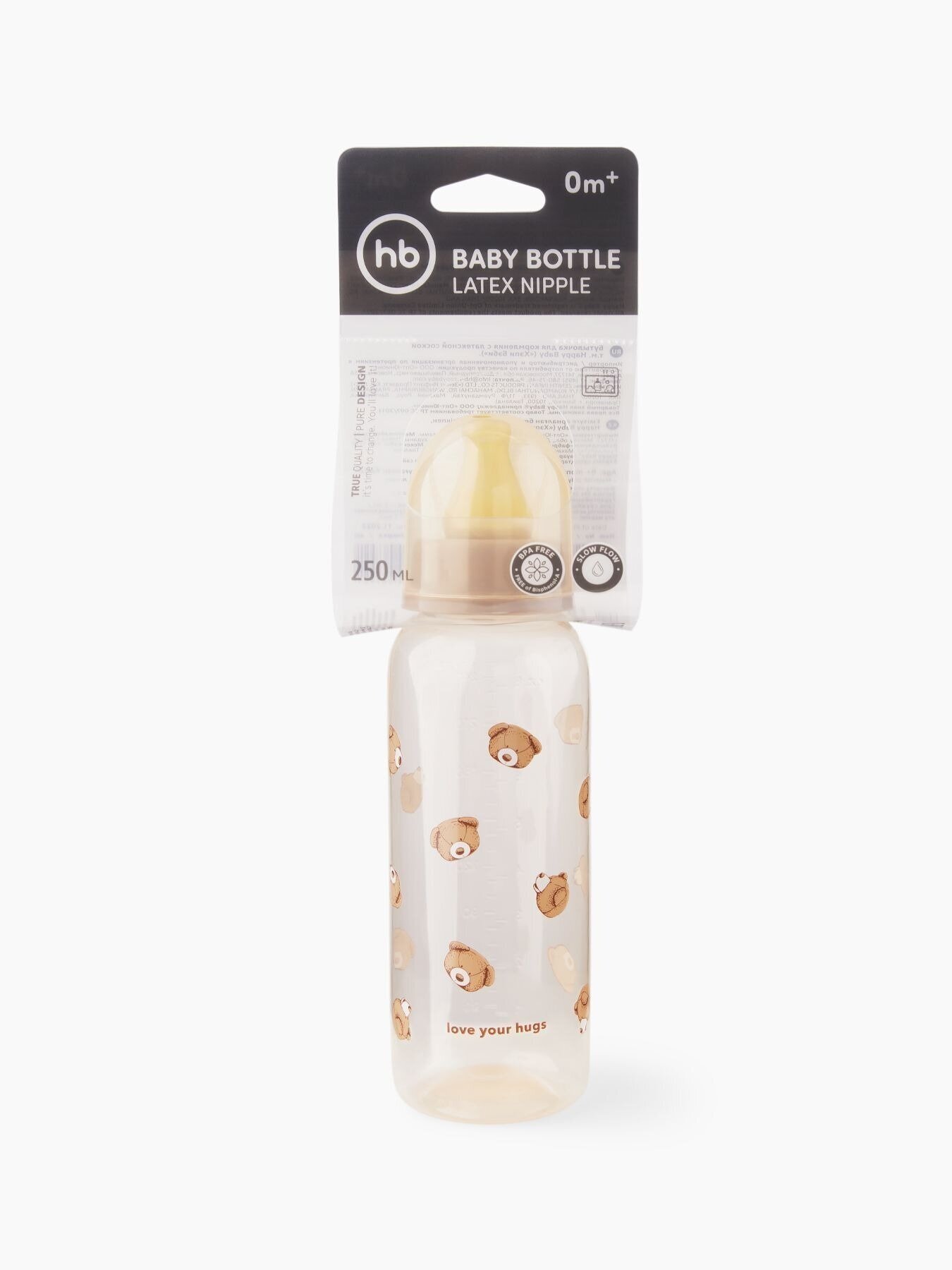 10018, Бутылочка для кормления с рождения Happy Baby, латексная соска, медленный поток, от 0 месяцев, 250мл, бежевая с мишками