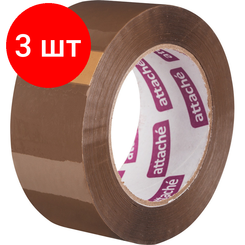 Купить Комплект 3 штук, Клейкая лента упаковочная ATTACHE 48мм х 132м 45мкм коричневая