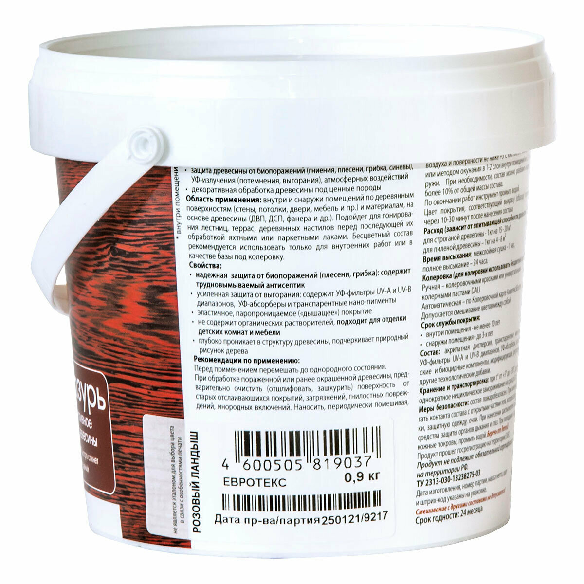 Eurotex Аквалазурь лак защитно-декор. для дерева акриловый лессирующий, сосна (0,9л) интересное: