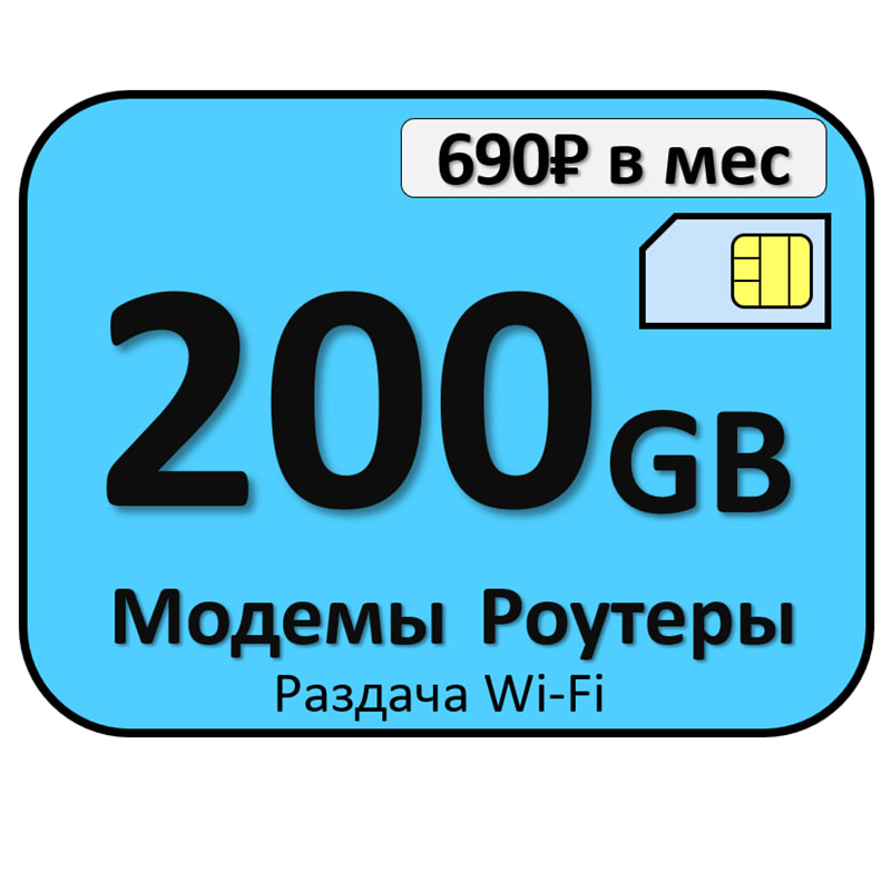 Купить Сим карта 200 ГБ для модемов и роутеров с бесплатной раздачей Wi Fi