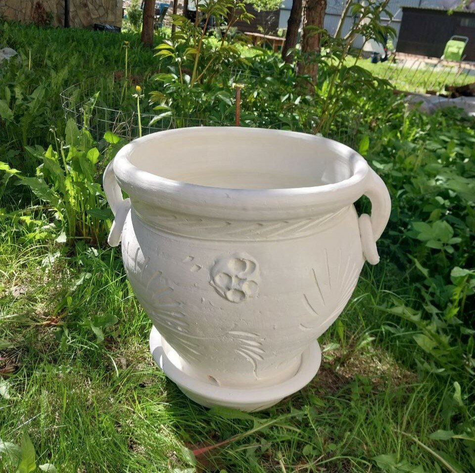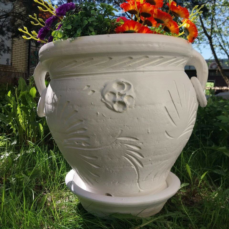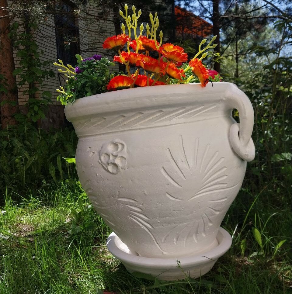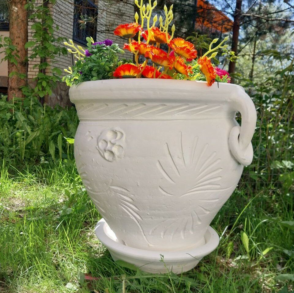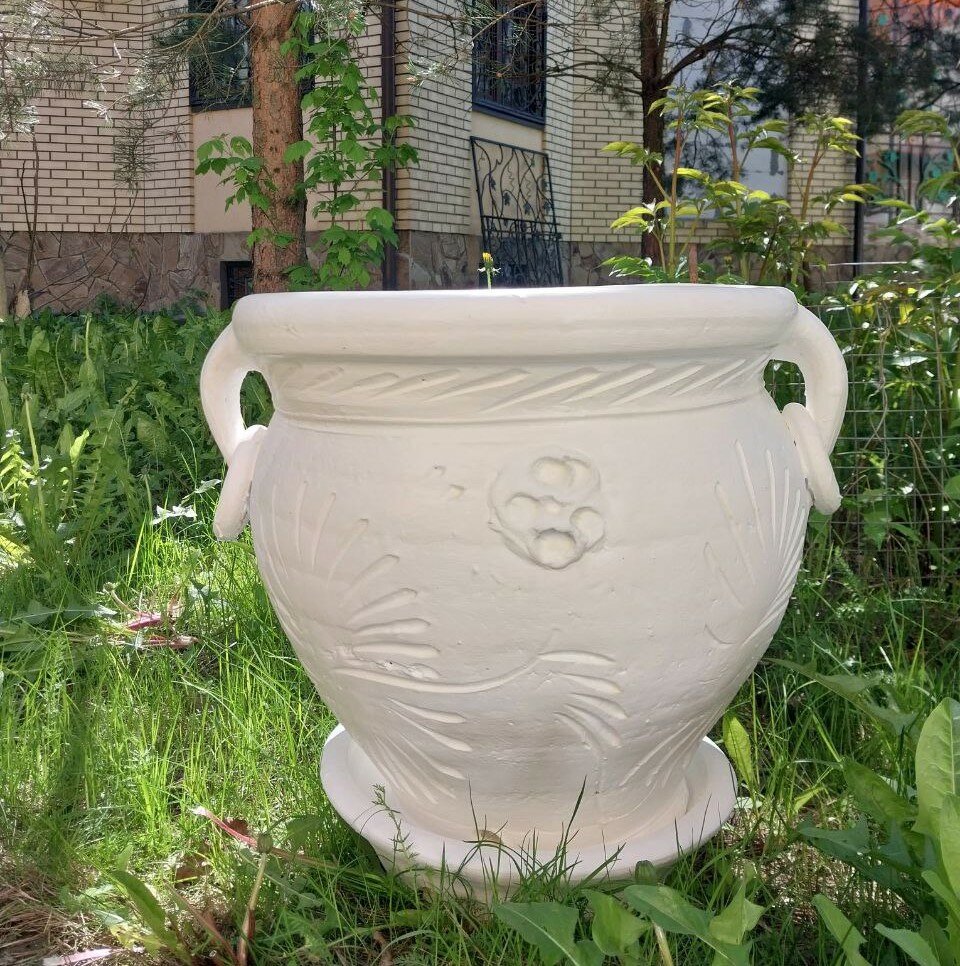 Горшок для цветов ручной работы, 35 л, натуральная глина, уличный, садовый, цвет белый интересное: