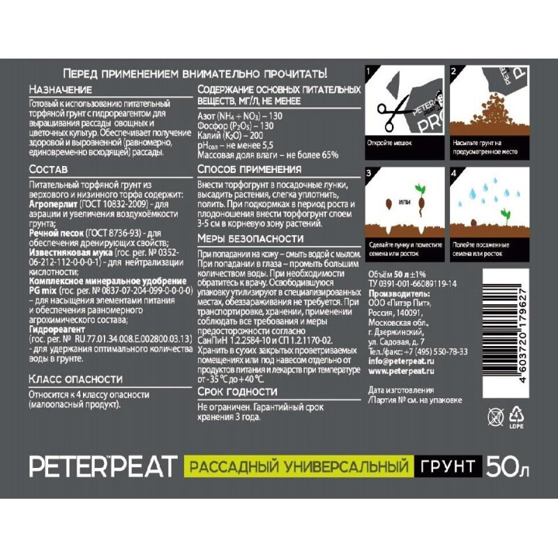 Грунт для стимуляции роста рассады Peter Peat Pro, 50 литров интересное:
