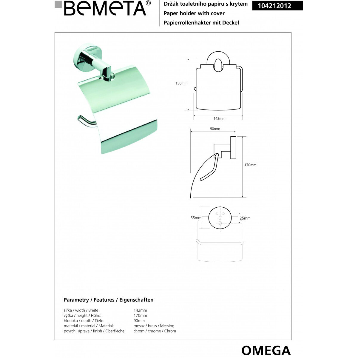 Держатель туалетной бумаги Bemeta Оmega, арт. 104212012, хром, с крышкой