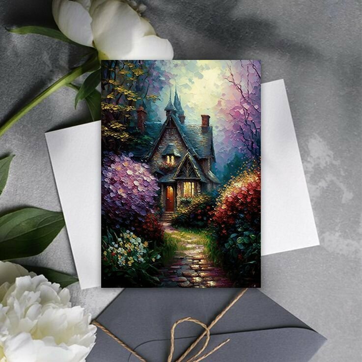 Набор открыток "Сказочный домик", 10.5 см х 15 см, 4 шт, InspirationTime, на подарок и в коллекцию
