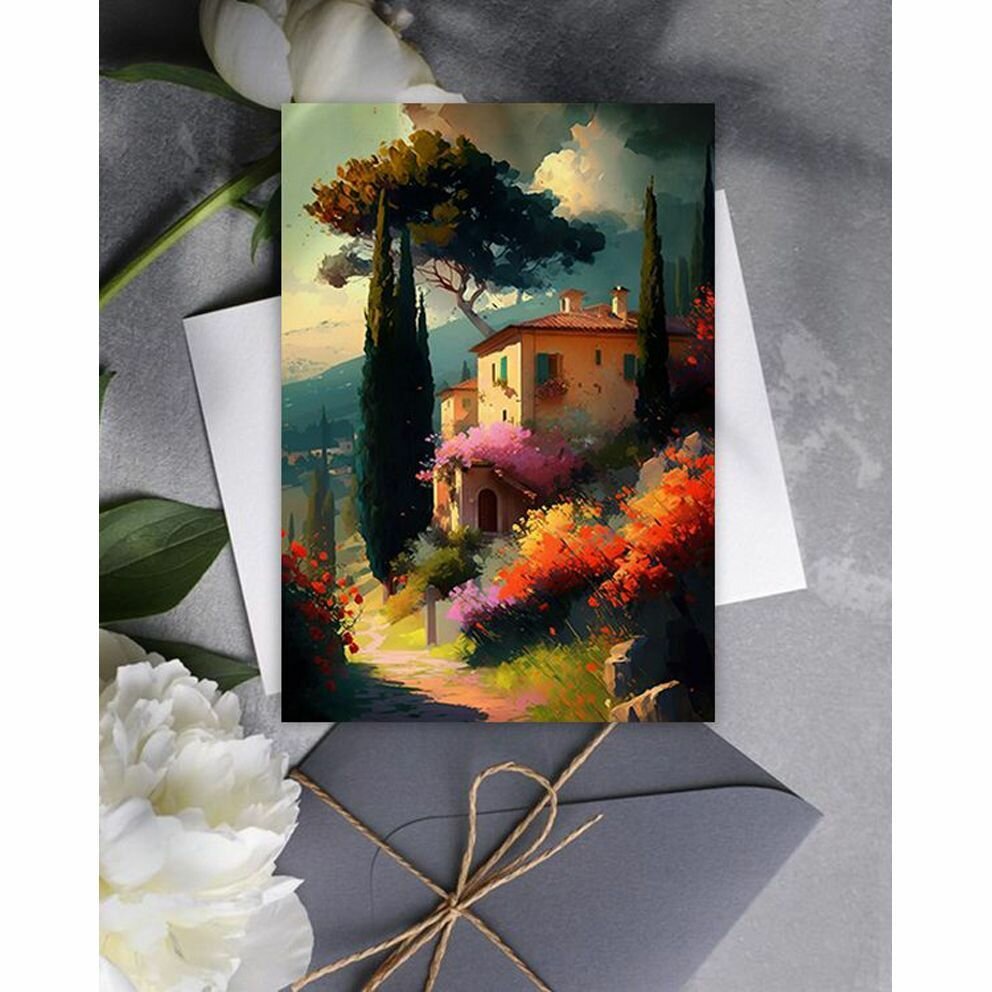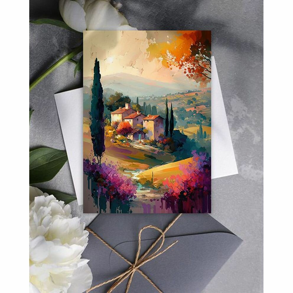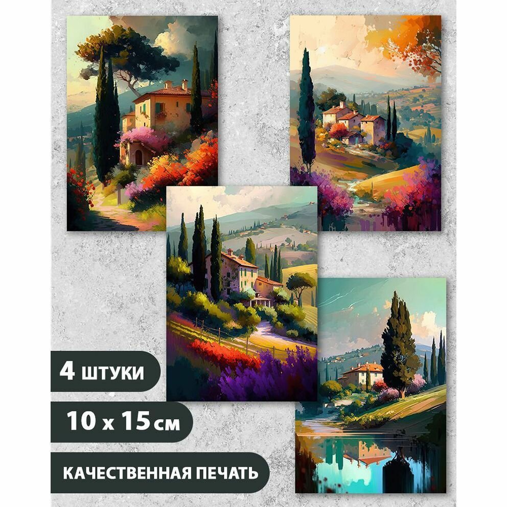 Набор авторских открыток "Сельский пейзаж. Тоскана 2", 10.5 см х 15 см, 4 шт, на подарок и в коллекцию, InspirationTime интересное: