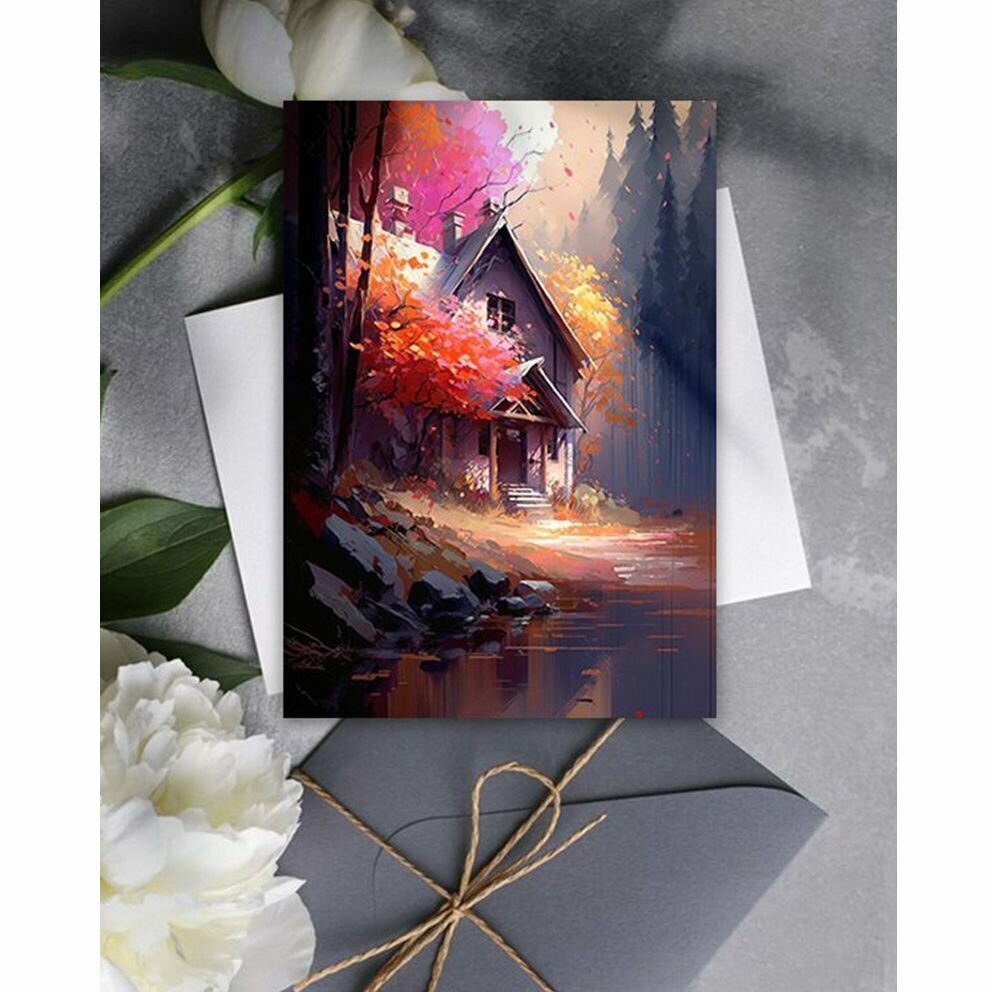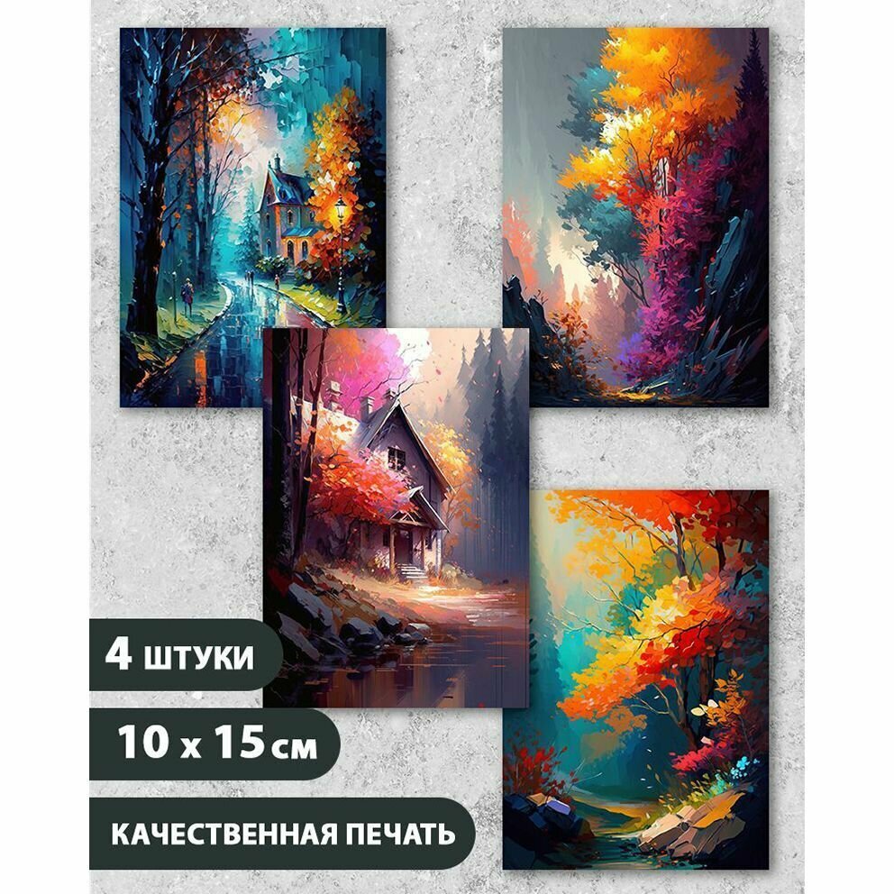 Набор открыток "Яркий летний пейзаж с домиком", 10.5 см х 15 см, 4 шт, InspirationTime, на подарок и в коллекцию интересное:
