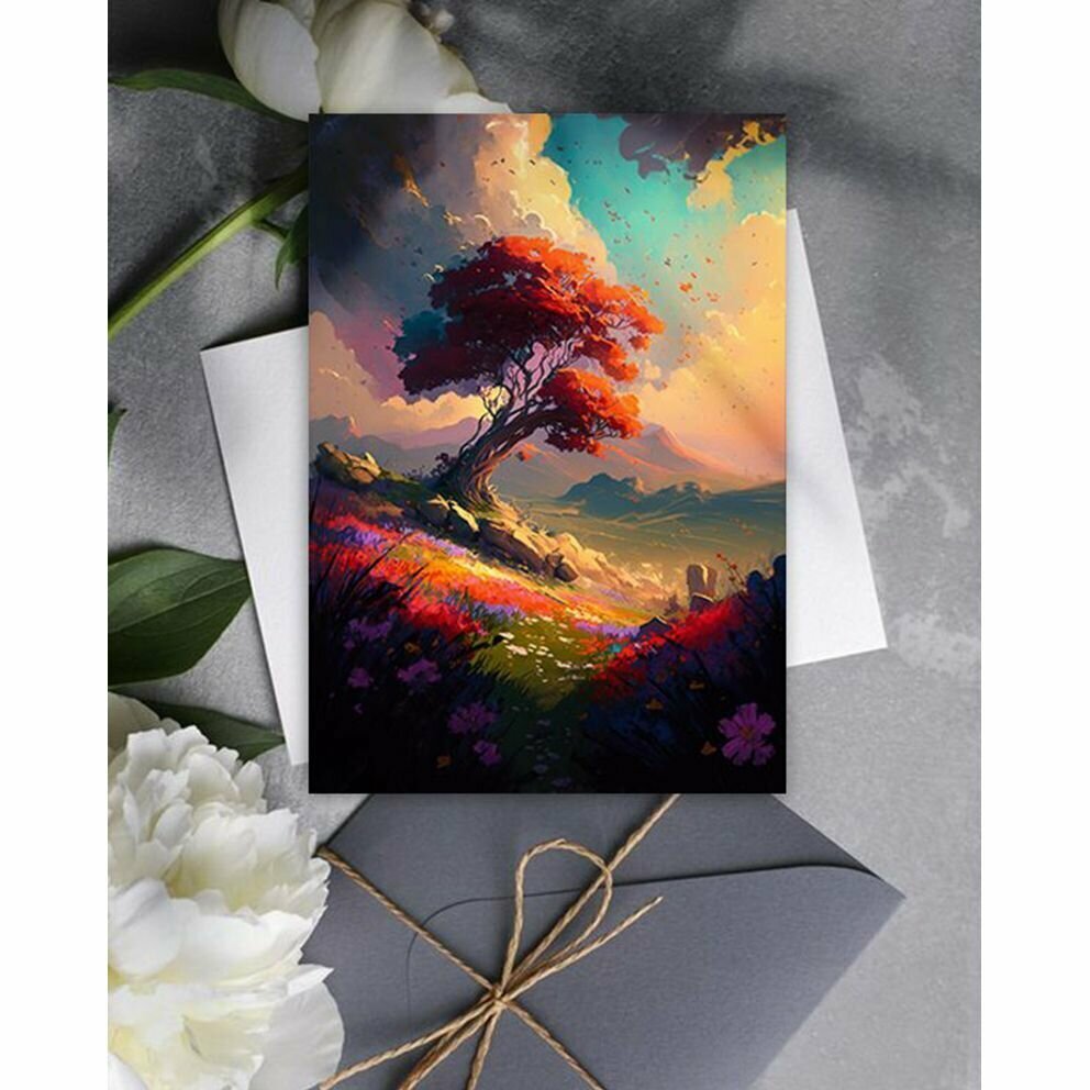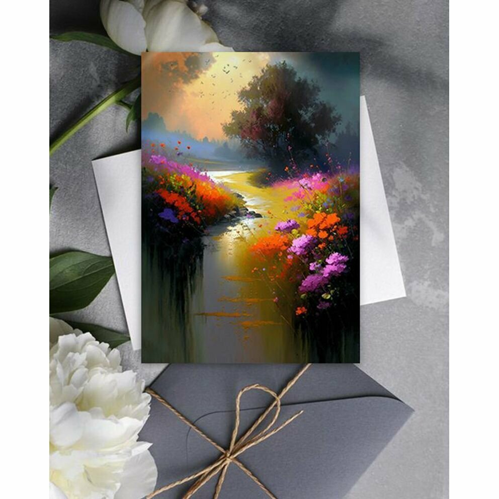 Набор открыток "Яркий летний пейзаж", 10.5 см х 15 см, 4 шт, InspirationTime, на подарок и в коллекцию интересное: