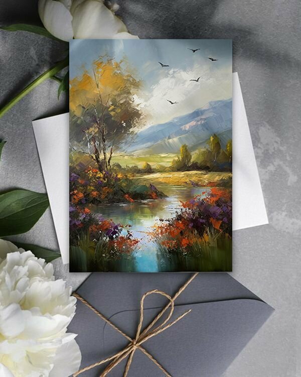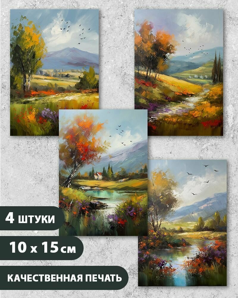 Набор открыток Осенний пейзаж, 10.5 см х 15 см, 4 шт, InspirationTime, на подарок и в коллекцию интересное: