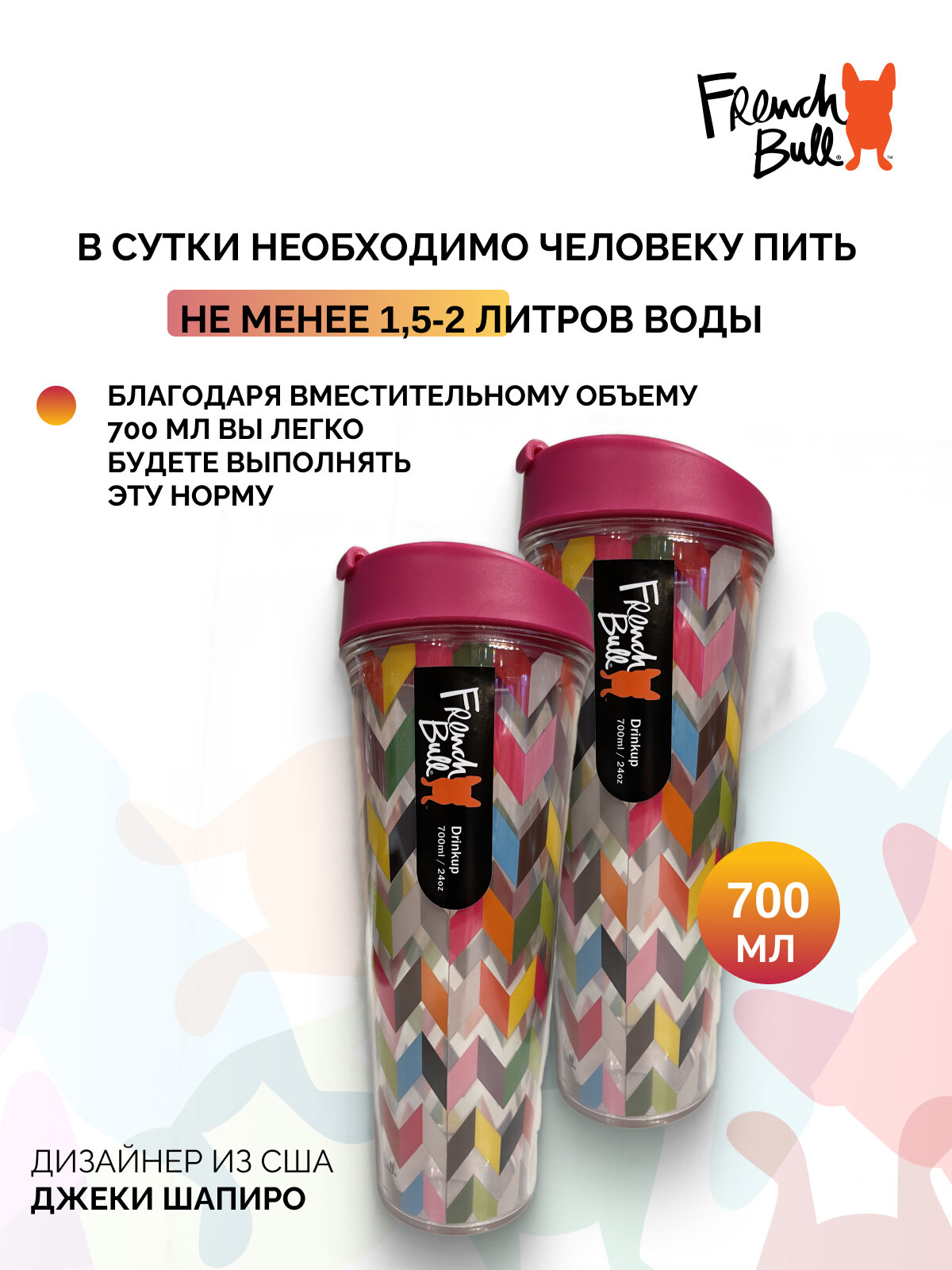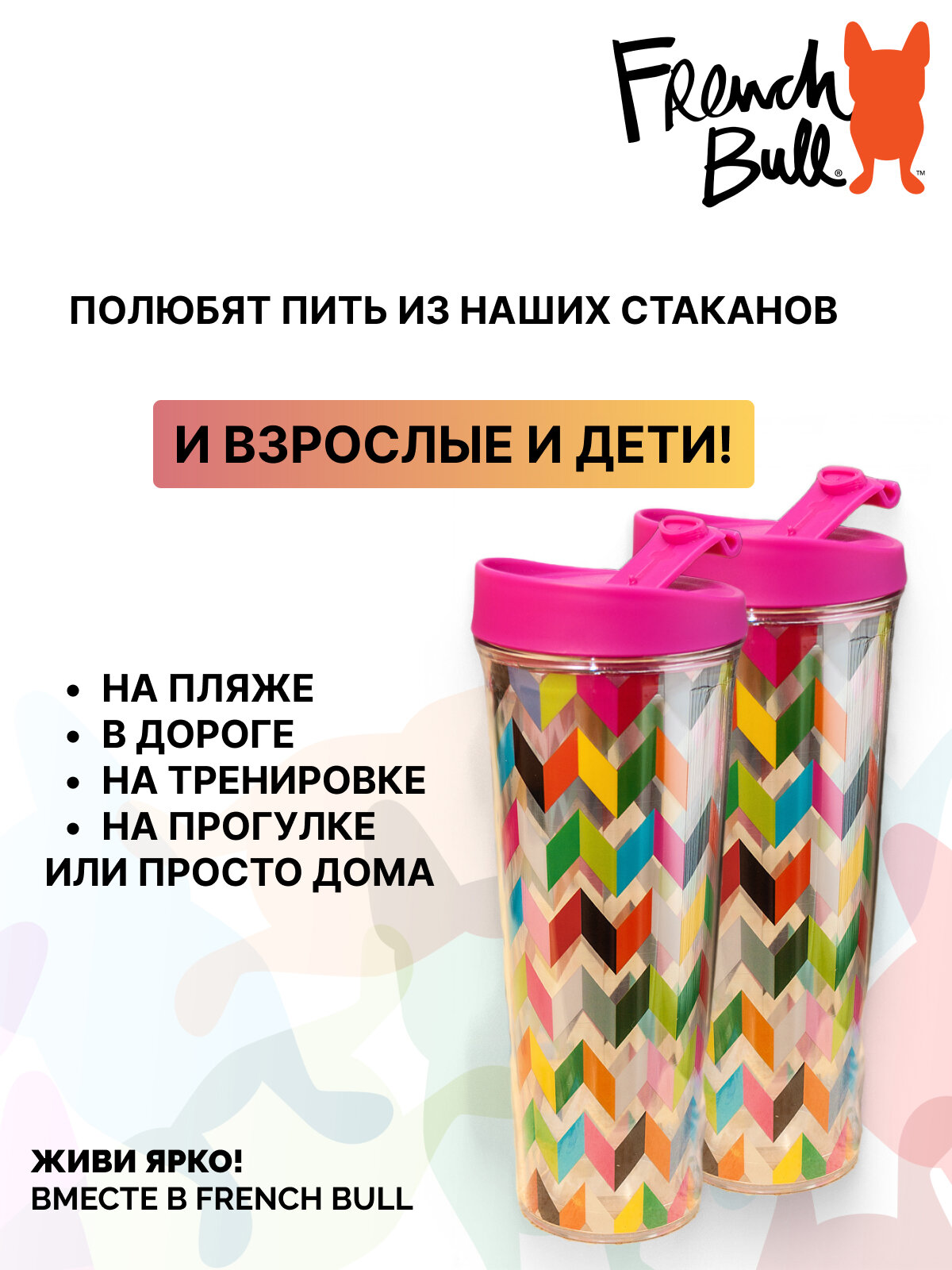 Набор стаканов French Bull с крышками 2 штуки интересное: