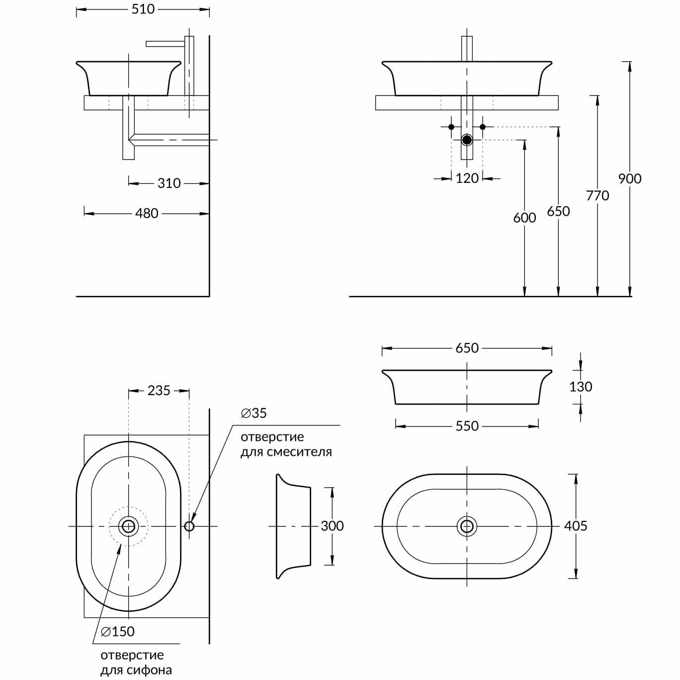 CN.wb.65 Раковина CANALETTO 65x40 Цена за 1шт.