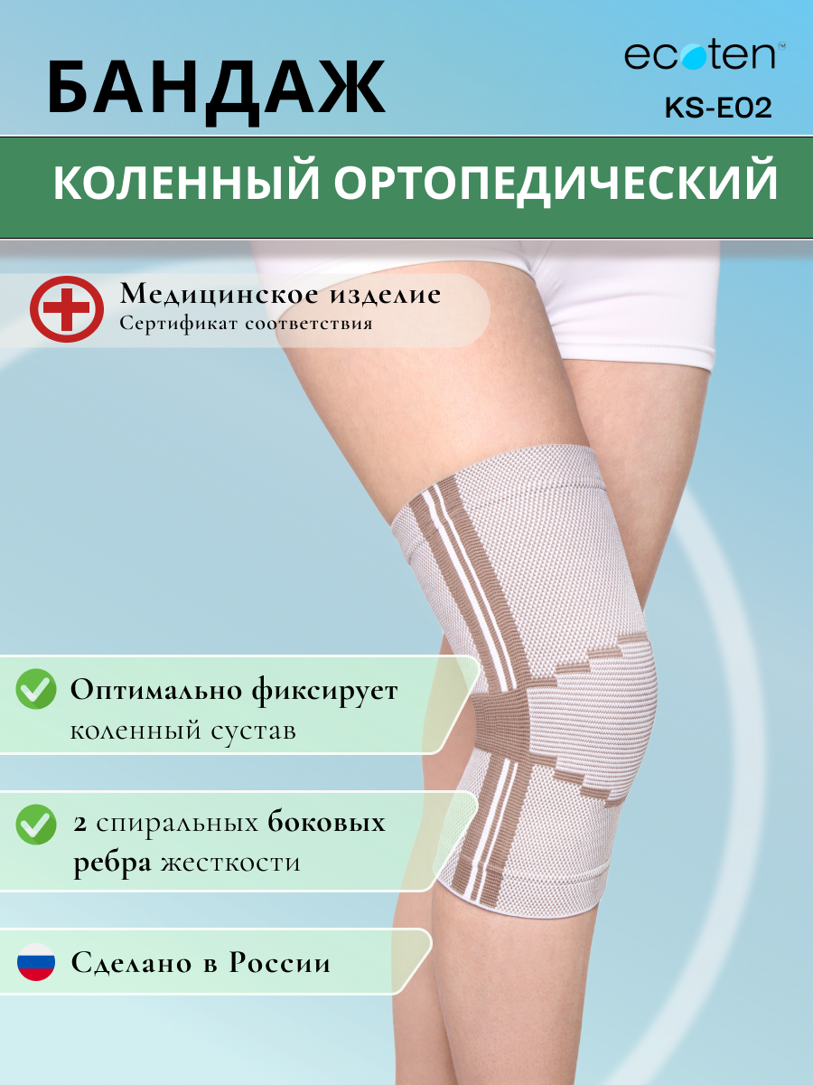 Бандаж компрессионный на коленный сустав эластичный с 2-мя пружинами KS-E02 "Экотен", цвет бежевый, размер L