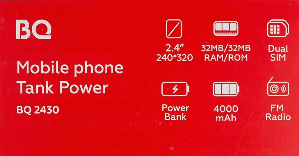 Мобильный телефон BQ BQ-2430 Tank Power 2.4", 4000 мА·ч, черный/серебристый