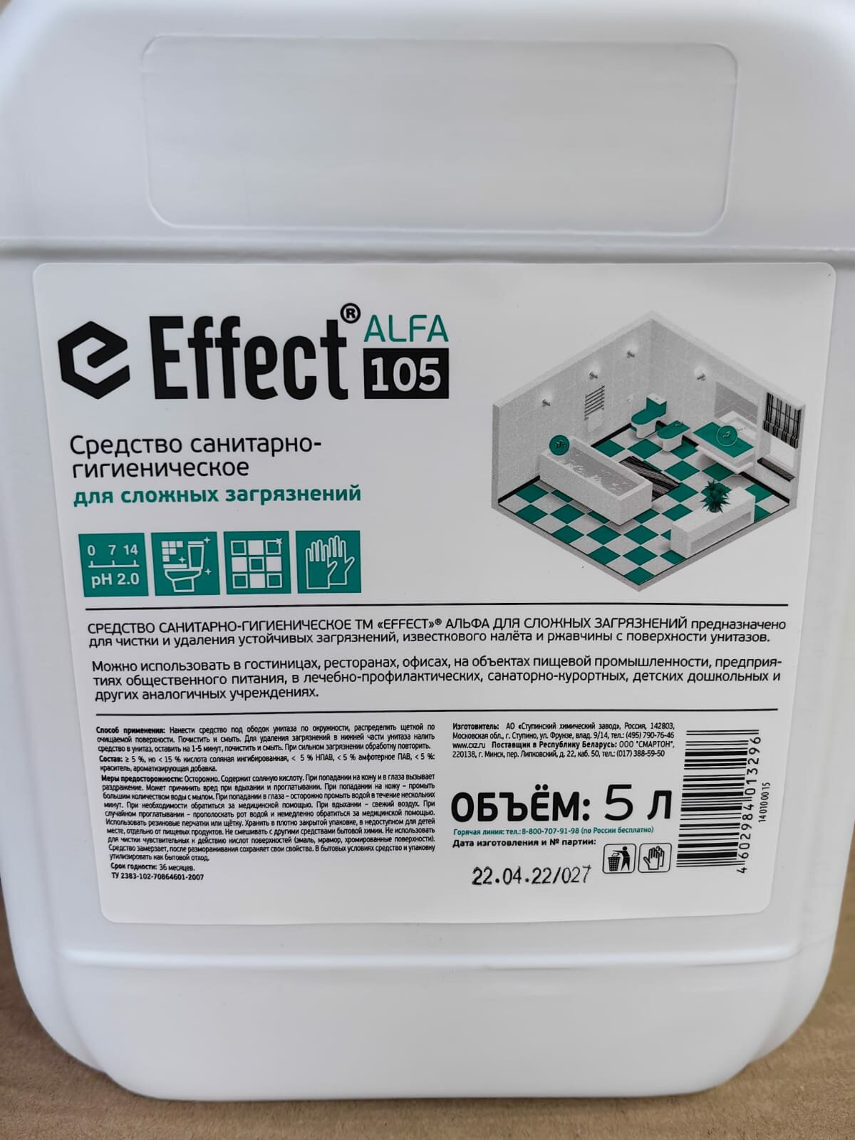 Купить Чистящее средство 5000мл EFFECT Alfa 105, для сантехники, кислотное, для сложных загрязнений