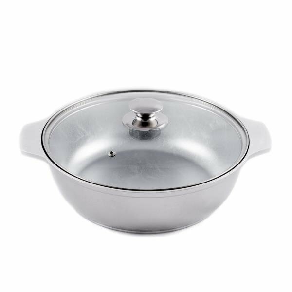 Жаровня, 3 л, d=26 см, стеклянная крышка, цвет хромированный