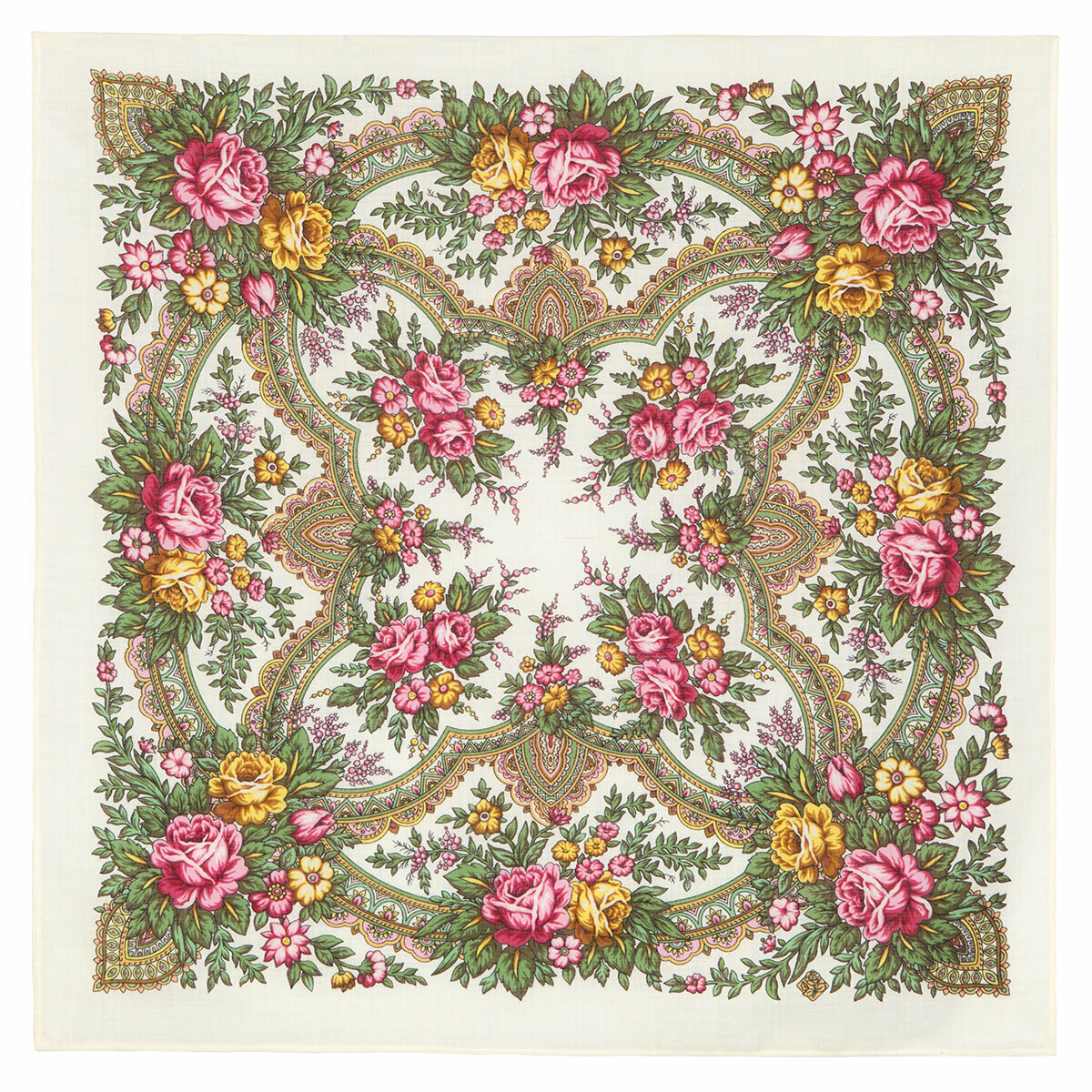 Платок шерстяной Павловопосадские платки Всплески радости 0, белый, 72 х 72 см