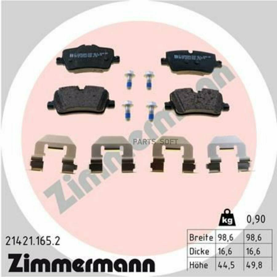21421.165.2_Колодки Дисковые !Задн. 99X45x17 Bmw 2/X1 F45/F46 14> Zimmermann арт. 214211652 интересное: