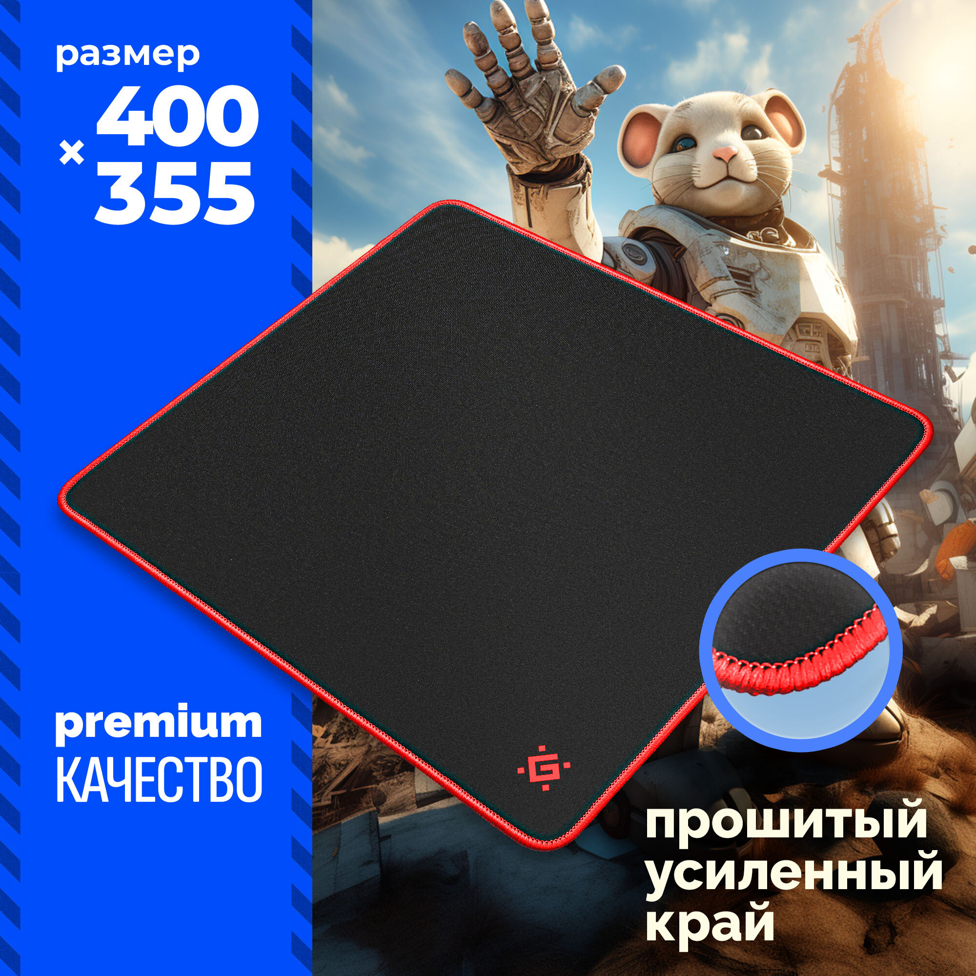 Коврик для мыши Defender Black XXL, игровой, 400x355x3 мм, чёрно-красный Defender 4991421 .