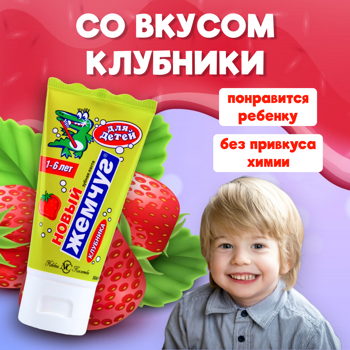 Новый Жемчуг Зубная паста для детей Клубника 50 мл 2 шт / Зубная паста для детей от 1 года