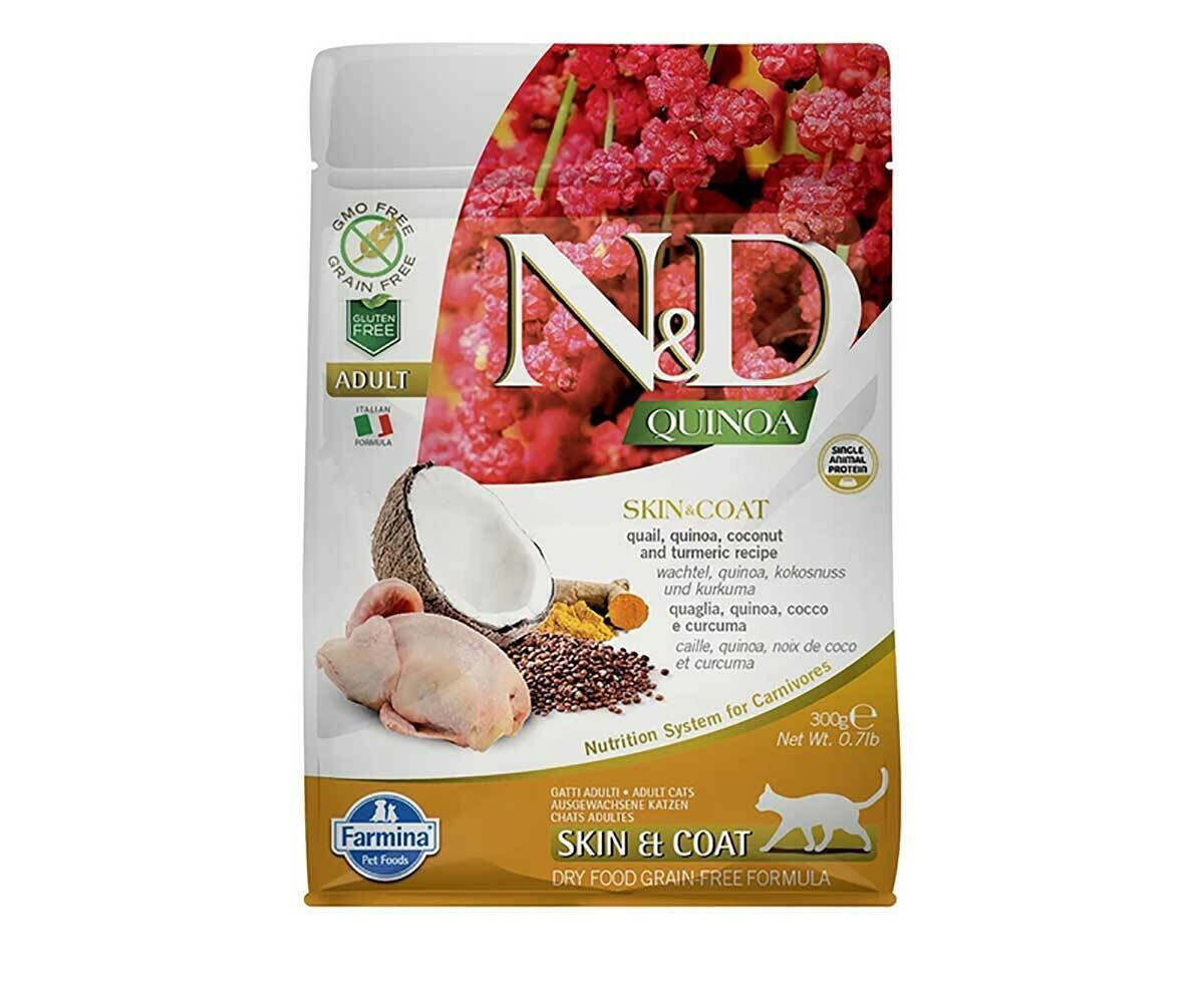 Farmina N&D Quinoa Cat Grain Free Skin & Coat Quail сухой беззерновой корм для взрослых кошек для кожи и шерсти с перепелом и киноа - 300 г