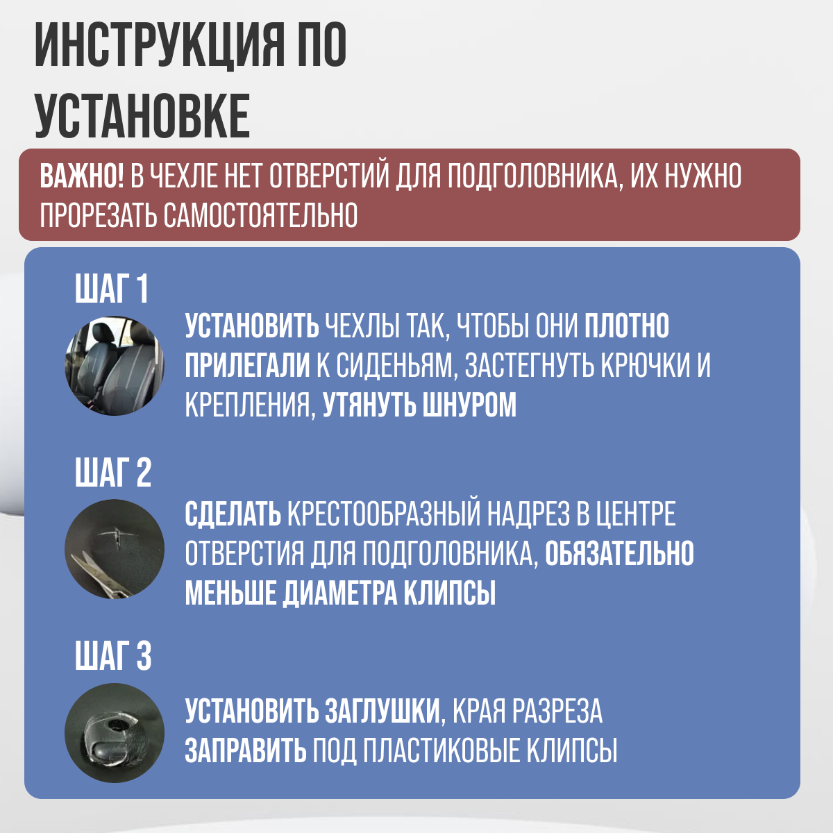 | Дополнительная информация | Способ применения: Наденьте чехлы на сидения и закрепите их. |
